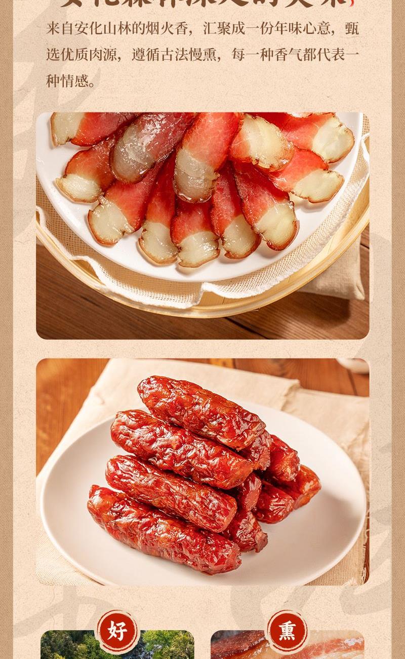 1.安化后腿臘肉(300g) 2.安化原味臘腸(250g)